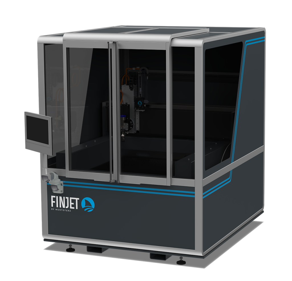 A FinJet S egy „plug-and-play” kivitelű vízsugaras vágógép, amely gyors telepítést és üzembe helyezést tesz lehetővé. Kis mérete ellenére ipari célokra készült, a FinJet H sorozat műszaki alapjaira építve. Amennyiben a rendelkezésre álló hely korlátozott, de rendszeresen szükség van vízsugaras vágásra, a FinJet S optimális megoldást kínál. Zárt kialakításának köszönhetően rendkívül biztonságos, és ugyanazt a kiváló vágási minőséget nyújtja, mint a nagyobb FinJet vízsugaras vágógépek.